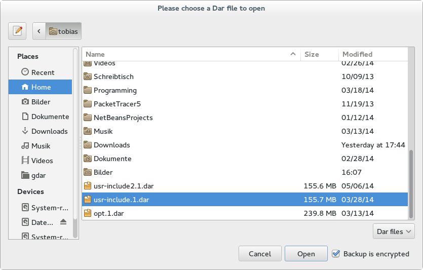 - 15. Sep 2014 - Open dar archives from your file browser via “open with Gdar”!